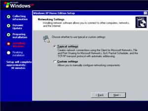 (click on thumbnail to view image) - Next, you'll be prompted to select a network setting. Select Typical Settings and click Next. Click Next again.