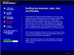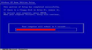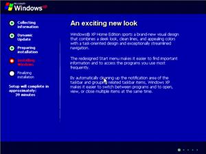(click on thumbnail to view image) - Windows XP Setup resumes its installation.