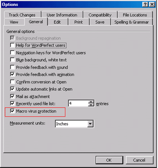 - Ensure Macro Virus Protection is enabled in your Microsoft Word ( Tools- Options - General)