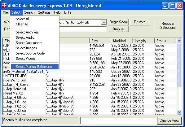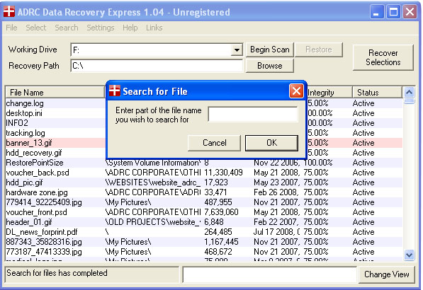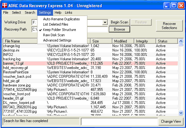 ADRC Data Recovery Express is able to recover data from more all cases of logical damage such as deletion, formatted media, partition corruption, virus attack and other forms of logical damage.