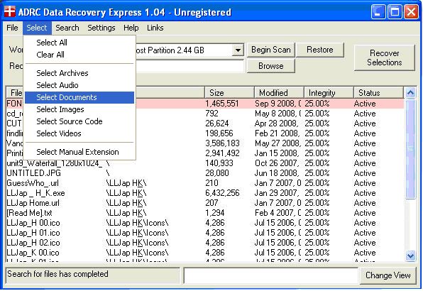 ADRC Data Recovery Express is easy to use. Just scan and recover! |