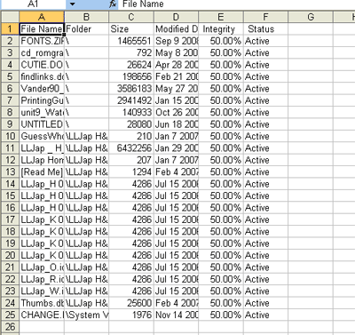 Save or print the file information in csv format. It can be reviewed in spreadsheet software such as Microsoft Excel. A sample of the report is shown. (Sample of the report ) |